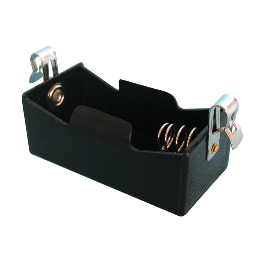 Product Name Battery Holder, D Cell W/ Fahnestock Clip Material Plastic (Battery Holder), Metal (Fahnestock Clips) Type D Cell Battery Holder Compatibility Compatible with D Cell batteries Dimensions Size of D Cell battery Features Fahnestock Clips for easy wire insertion and secure hold Color N/A