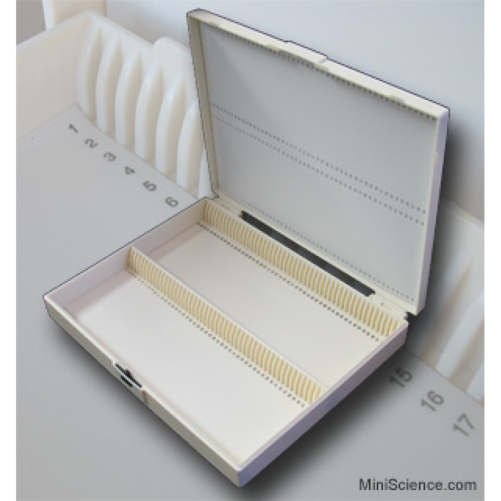 Product Name Microscope Slide Storage Boxes 100 Slide Box Product Type Slide Storage Boxes Capacity 100, 50, 25 Slides Compatibility Microscope Slides Similar Products