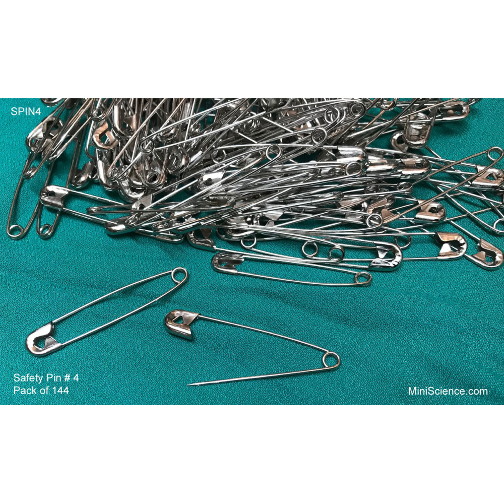 These #4 safety pins are fabricated from high‑ nickel, providing a corrosion‑resistant, reusable metal fastener. At 2.25" long and supplied in a 144‑count bulk pack, they are suited for a wide range of garment and craft applications.